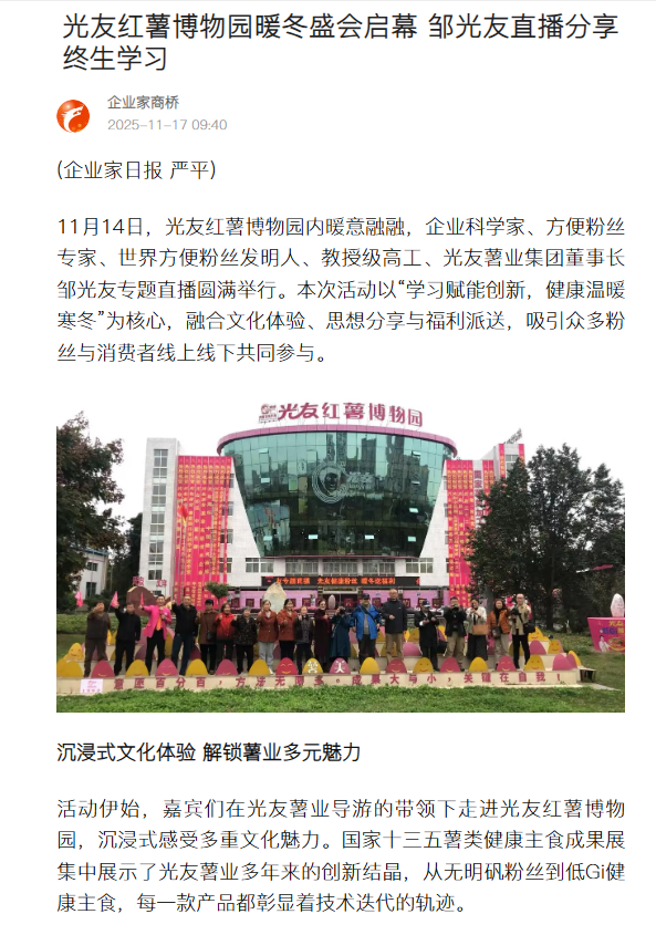 轉(zhuǎn)載搜狐網(wǎng)-光友紅薯博物園暖冬盛會(huì)啟幕 鄒光友直播分享終生學(xué)習(xí)